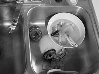 At 18:01 this evening, Rölf made the following entry in the central lab notebook: All soiled dishes missing except for one bowl and four utensils. Small amount of soap bubbles floating in bowl; large volume of soap bubbles emerging from right drain. Scrub brush, two drain sieves, and nine thin, rectangular ice cubes in dry sink bottom.