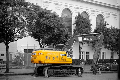 There’s a backhoe parked menacingly outside of the Internet Archive, but it’s really no threat at all: someone absconded with the cutting/digging thingie at the end of its business appendage. I’m not suggesting that Ralf and/or I did or didn’t snatch the nasty bit; I’m simply noting that it ain’t there this morning.