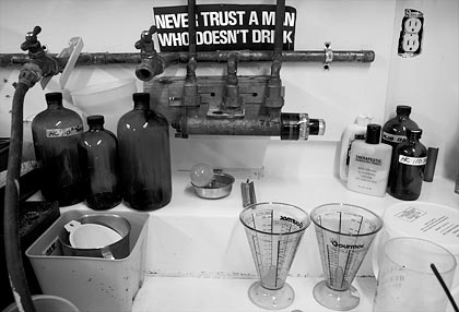 My last visit with him was on 13 December 2011; I had no idea it would be my final visit. I photographed his darkroom sink with the bumper sticker, “Never trust a man who doesn’t drink.” It’s a good way of remembering him.