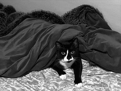 “I want you to come see what you’ve done!” Sylvia demanded before were even halfway through the second bottle of brunch champagne. She pointed at her cat poking his head out from beneath a heavy blanket.