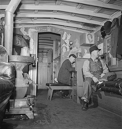 Ideally, I’ll get a caboose with a wood-burning stove like the one in the January 1942 photograph Dr. Arnold produced from his collection. Look at how content those guys are: one is working at a desk, and the other is looking out the window at the passing scenery. The water on the stove is always hot and ready for the next pot of coffee. I’m sure there’s at least one bottle of hooch hidden in the filing cabinet.
