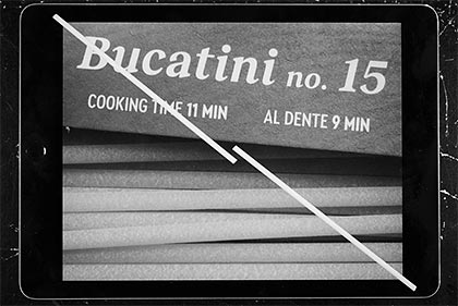 I’ve been eating different varieties of pasta my entire life, but De Cecco Bucatini no. 15 is the first one that appealed to me visually; that’s why I made Bucatino no. 15 and Bucatini no. 15 (Diptych), an art piece with a little built-in Italian lesson.