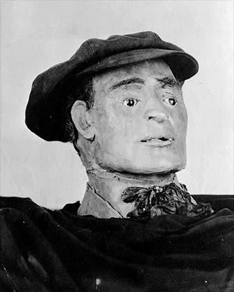 Toni showed me the book Anastasia gave her for her birthday, Wilfried Kaute’s Murder in the City, New York, 19101920. It could have been called Weegee Before Weegee except for two things. The photographs weren’t as nuanced as his, and then there’s the police sculpture. I can’t describe the image better than the caption: “A skeleton fitted with features made from wax in order to identify the slain party.”